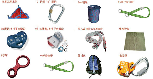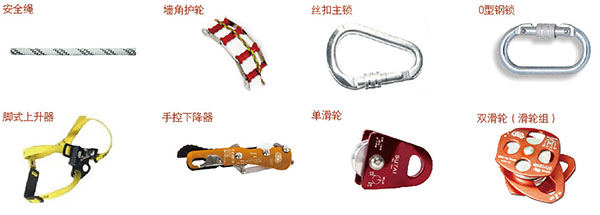 ·消防防坠落辅助设备星与安全嘶n安全吊带、安全腰带配套使用的承载部件的统称,包括安全钩、上升器、下降器、止锁器、八字环、制动杆、墙角护轮和滑轮装置等。